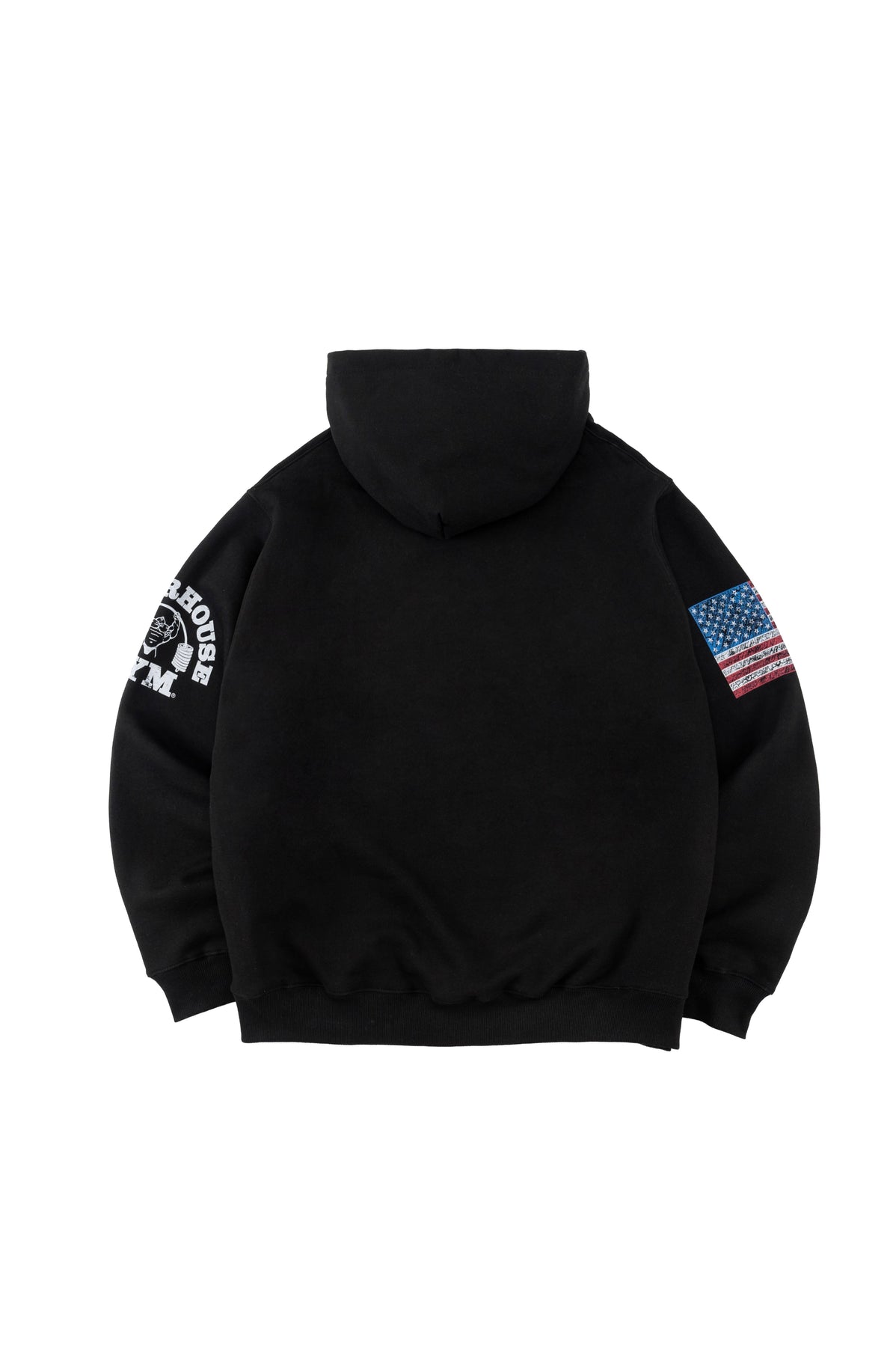 両袖には星条旗モチーフとPOWERHOUSE GYMエンブレムを配置。