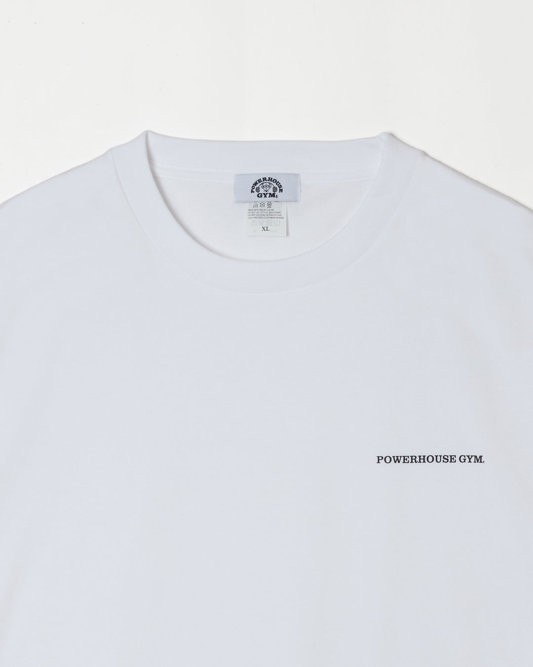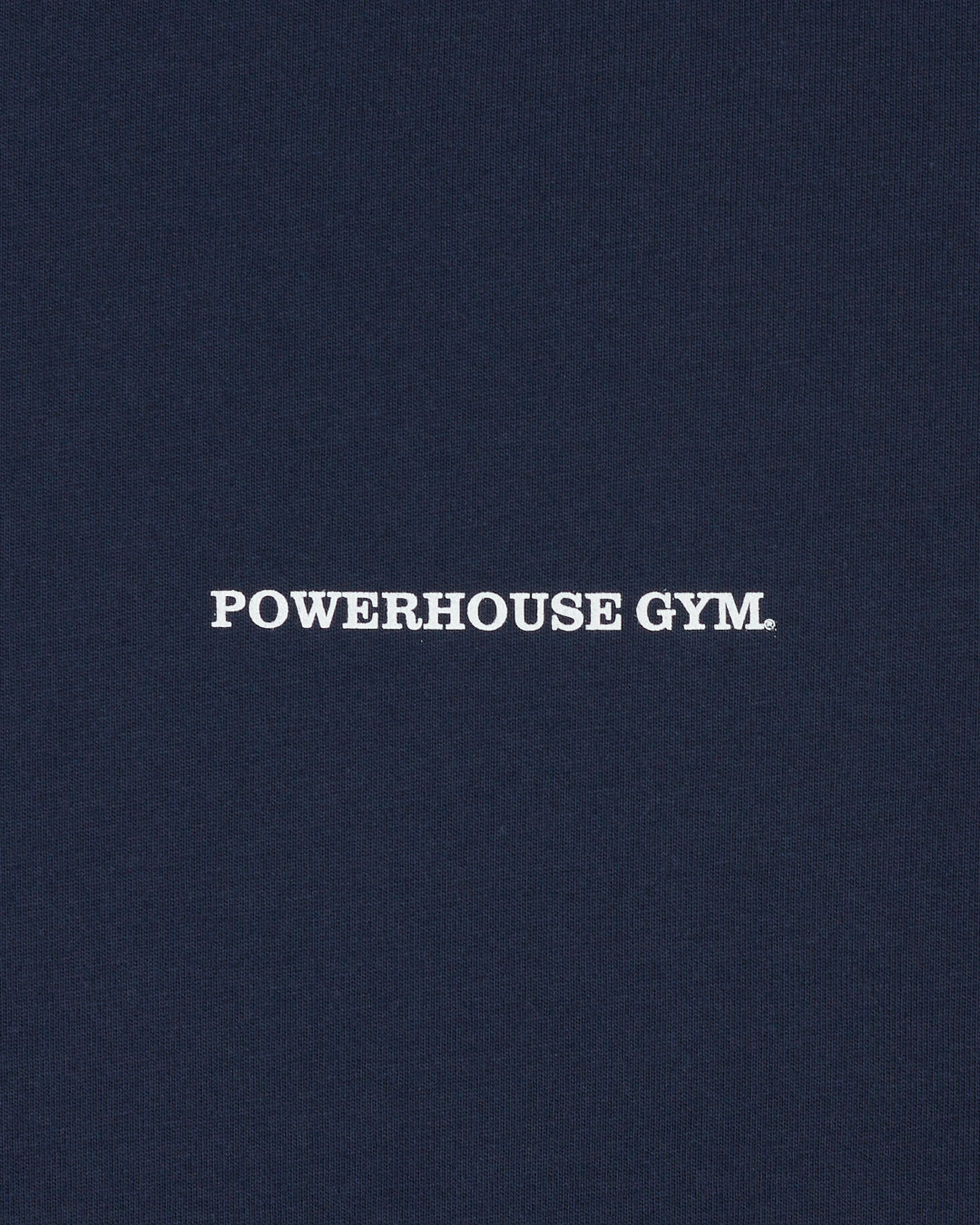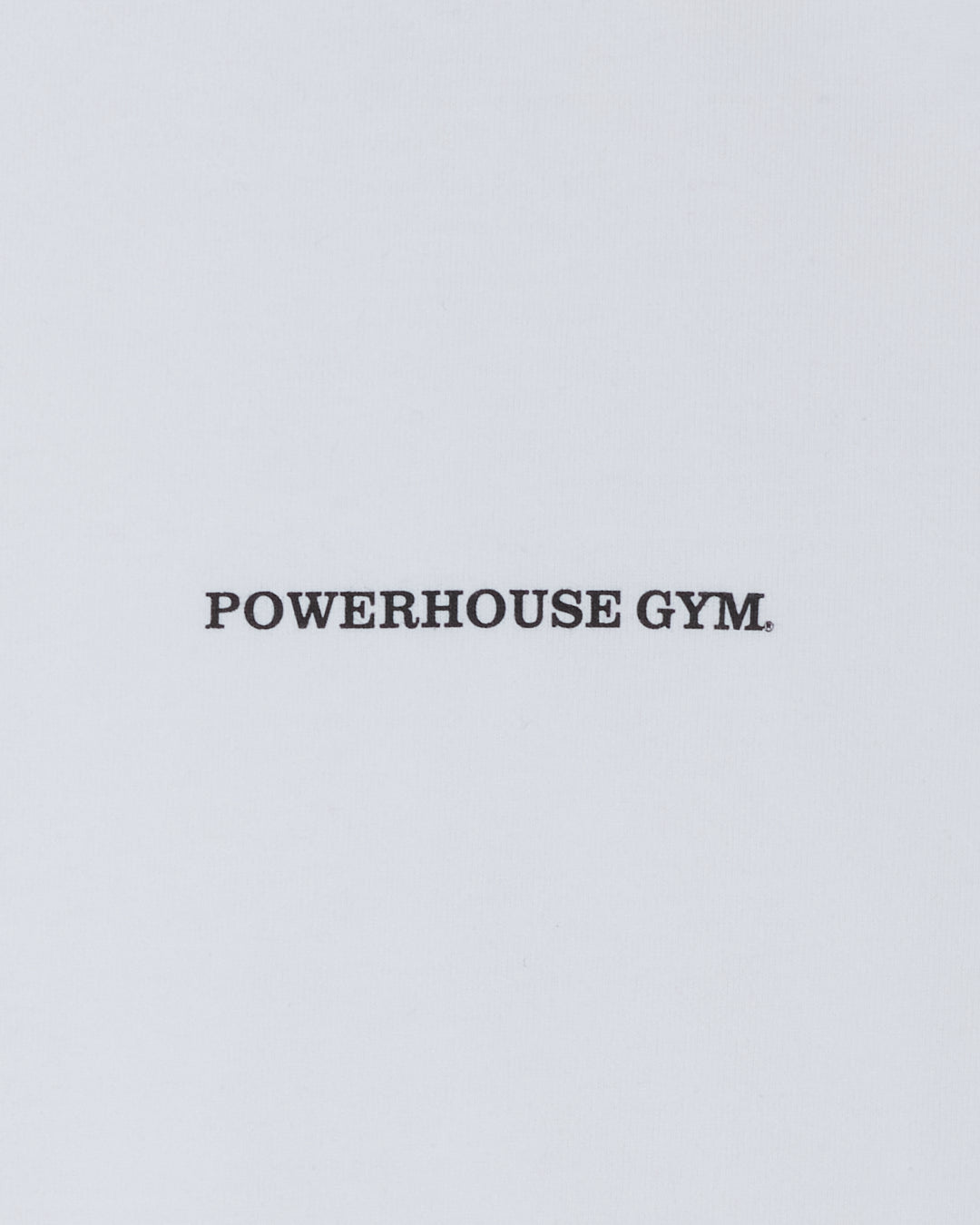 胸元には POWERHOUSE GYM ロゴをワンポイントで配置したミニマルなデザイン。シンプルだからこそ、トレーニングシーンからタウンユースまで幅広く活躍する一枚です。